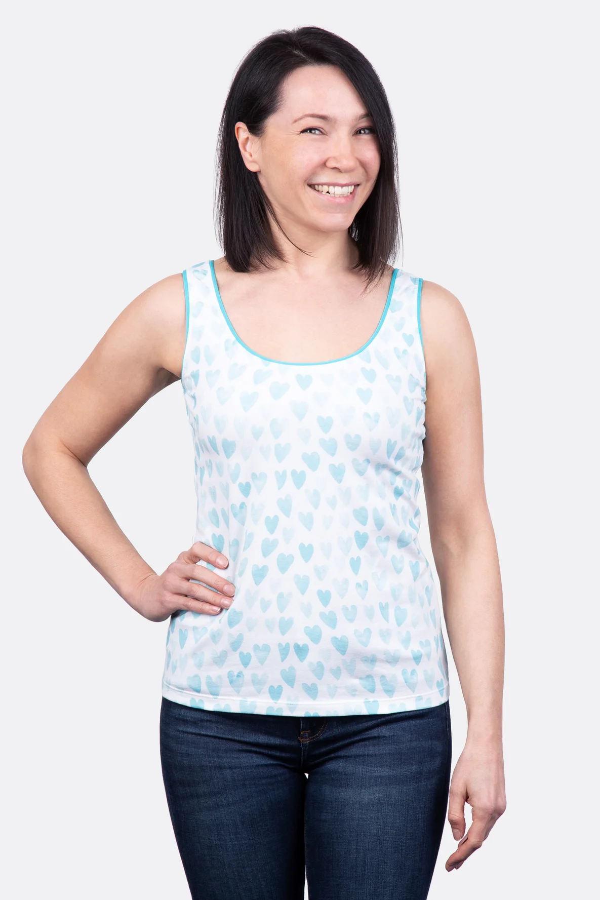The pattydoo women‘s top “Livia” is a nice basic piece – great not only for summer but also for winter layering. The neckline opening and the armholes are serged or edged with a strip of additional fabric. With a little practice, you‘ll be able to sew this top in no time at all!
