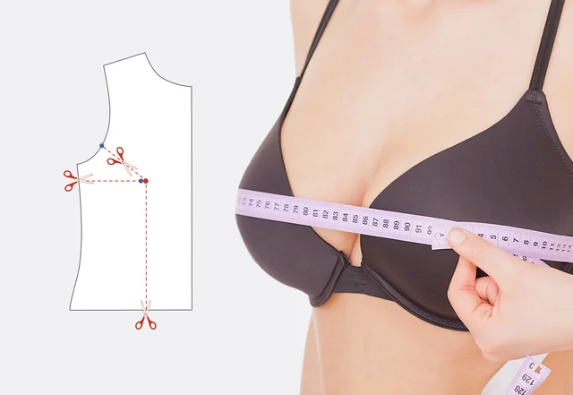 Üblicherweise wird bei Oberteilen die passende Größe anhand des Brustumfangs ausgewählt. Wenn der Schnitt für eine große Brust angepasst werden soll, geht ihr anders vor: ihr messt zusätzlich den Oberbrustumfang aus und nutzt diesen Wert für die Größenauswahl.