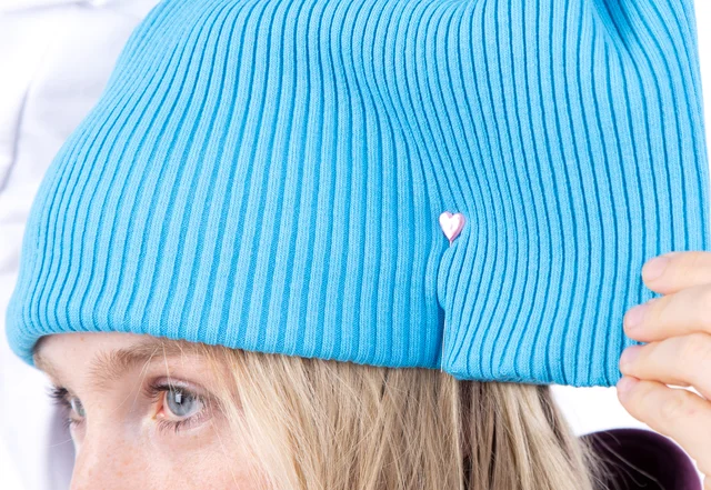 Wenn ihr einen etwas breiteren Umschlag möchtet, legt das Schnittteil 2-3 cm von der unteren Kante entfernt an. Mehr solltet ihr aber nicht dazu geben, sonst steht die Mütze steif vom Kopf ab. Die blaue Mütze wurde zum Beispiel mit einer Zugabe von 3 cm zugeschnitten.