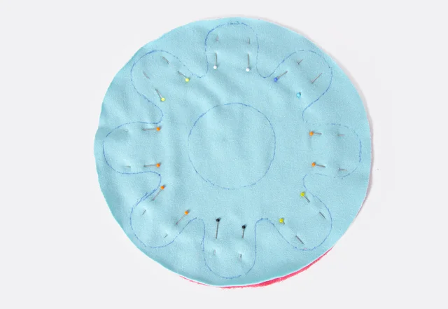 Steckt sie mit vielen Nadeln zusammen, sodass beim Nähen der Rundungen nichts verrutschen kann.