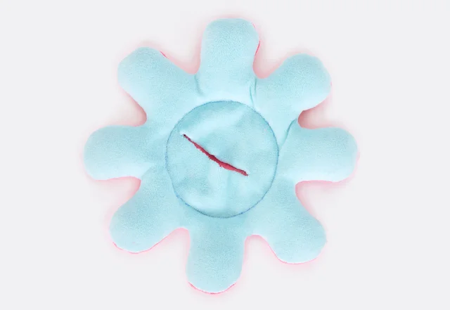 Wendet das Tentakel-Teil durch den Schlitz und zeichnet auf die rechte Stoffseite einer Tentakel-Seite anhand des Schnittteils mittig den Kreis für die Nahtlinie auf.