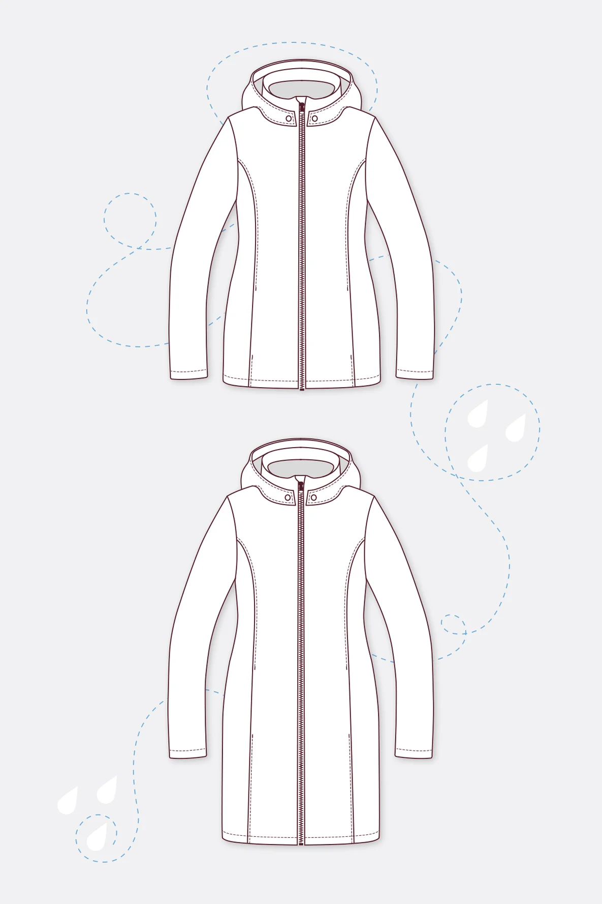 - Varianten: Jacke inkl. Anleitung für die Verlängerung zum Mantel