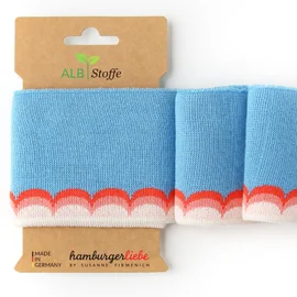 Fertigbündchen sind mittlerweile in zahlreichen Designs erhältlich und aus der Nähszene wohl nicht mehr wegzudenken. Ob mit Retrostreifen, Glitzer oder Rüschen - sie bieten vielfältige Möglichkeiten, einen simplen Schnitt oder unifarbene Stoffe aufzupeppen. Im Gegensatz zu klassischen Bündchenabschlüssen an Ärmeln und Säumen, bei denen die Nahtzugaben im Inneren verschwinden, bleiben die Overlock-Nahtzugaben bei Fertigbündchen innen sichtbar. Damit dies trotzdem möglichst sauber aussieht, zeige ich euch hier verschiedene Varianten zur Vorbereitung der Bündchenringe und stelle euch ein paar hilfreiche Tools zum Einziehen der Overlock-Fadenraupen vor.