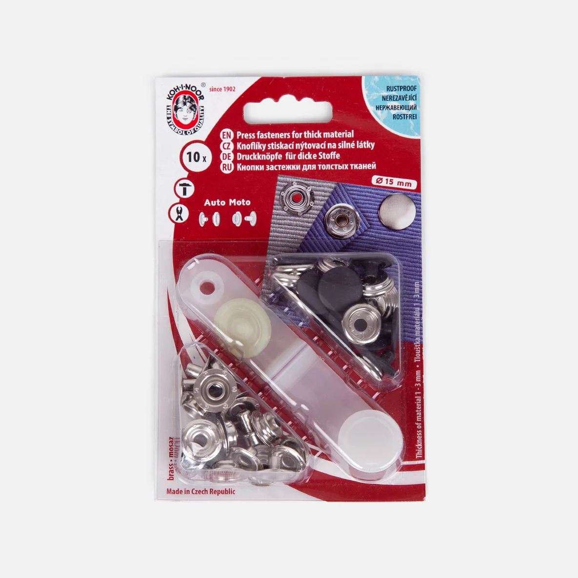 Mit diesen bunten Anorak-Druckknöpfen werden deine selbst genähten Jacken, Mäntel und Taschen zu ganz besonderen Hinguckern! Die Verschlüsse werden einfach mit einem Hammer und dem beiligenden Werkzeug befestigt oder du nutzt dafür die praktische Variozange.