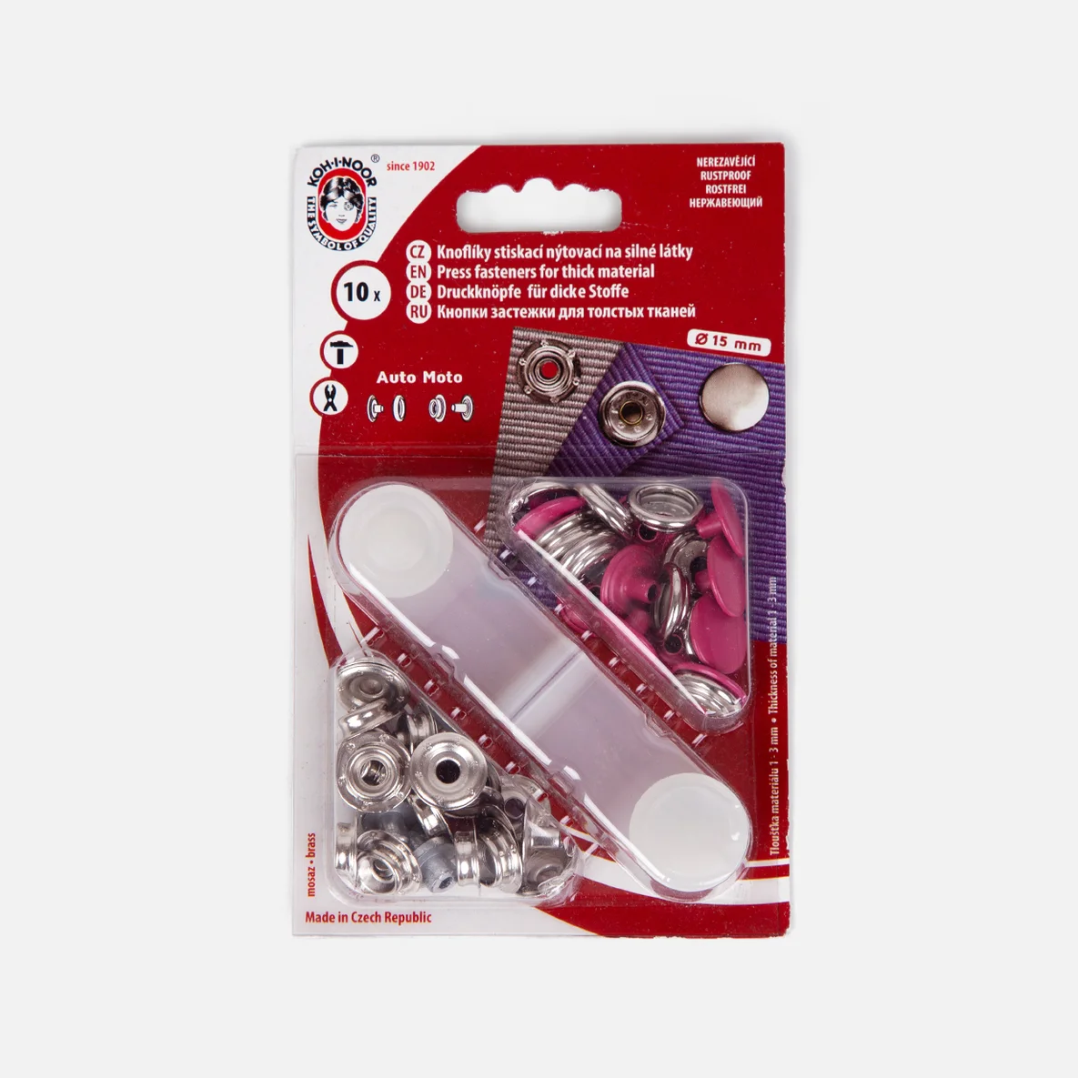 Mit diesen bunten Anorak-Druckknöpfen werden deine selbst genähten Jacken, Mäntel und Taschen zu ganz besonderen Hinguckern! Die Verschlüsse werden einfach mit einem Hammer und dem beiligenden Werkzeug befestigt oder du nutzt dafür die praktische Variozange.