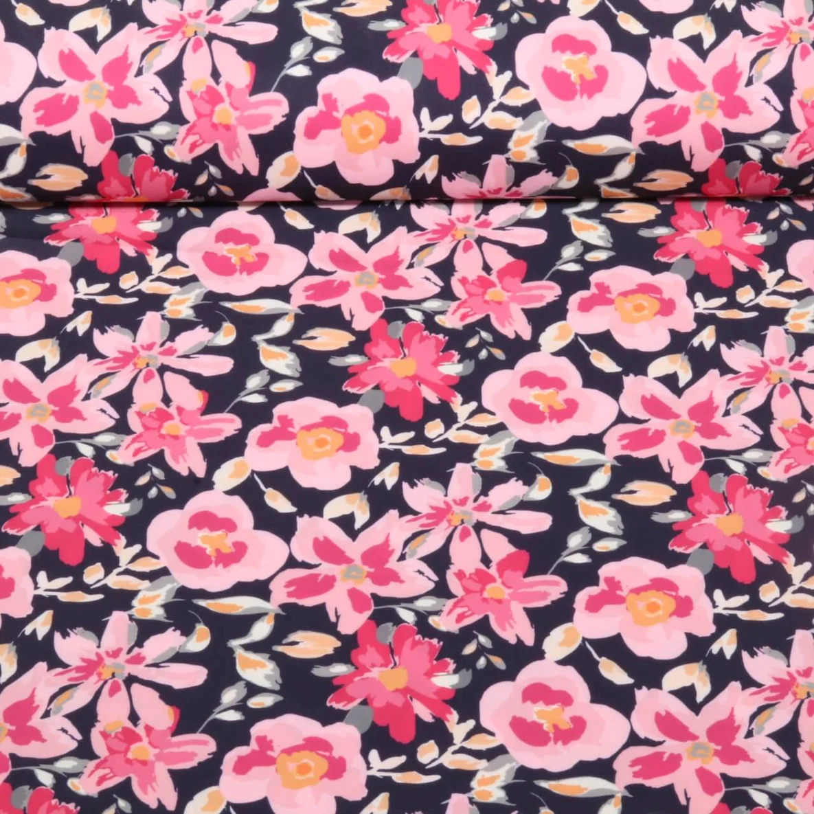 Sport- & Bademodenstoff LSF50 Recycled Blüten Nachtblau