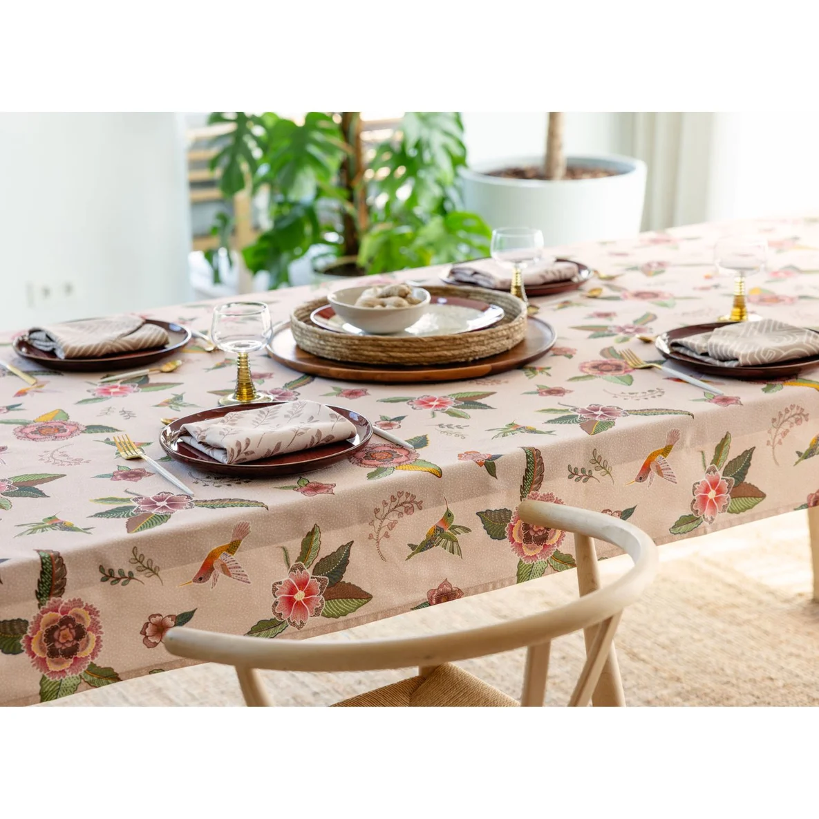 Baumwoll Canvas Blüten Und Kolibris Rosa