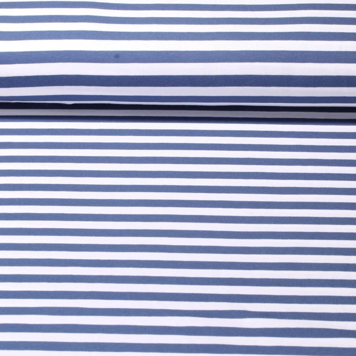 Baumwolljersey Streifen 10mm Jeansblau Weiß