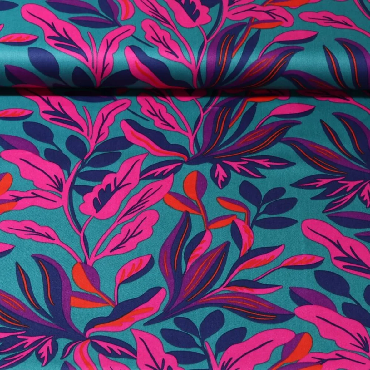 Nähe aus diesem Baumwollsatin von Nerida Hansen elegante Kleider, Blusen oder Röcke. Das Material hat einen angenehm fließenden Fall und eignet sich z.B. für unser Blusenkleid-Schnittmuster "Holly".