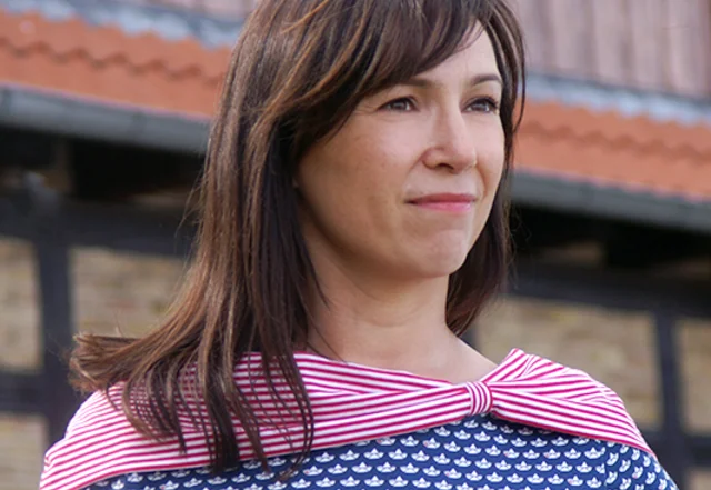 Mit unserem Schnittmuster "Ella" und dem kostenlosen Add-On lässt sich ein wunderschöner Ausschnitt mit Schleife im Matrosen-Look nähen. In meiner Schritt-für-Schritt Nähanleitung zeige ich euch wie das ganz einfach geht.