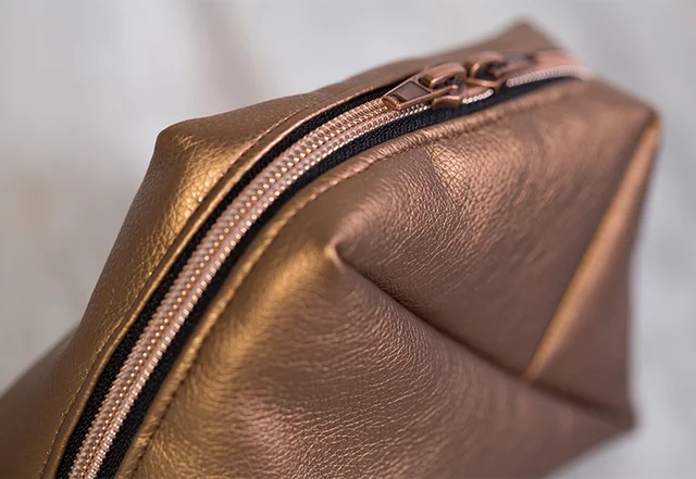 Da Stecknadeln bei Kunstleder Löcher hinterlassen, ist es ratsam mit Stoffklammern zu arbeiten. Näht mit einer größeren Stichlänge (3 bis 3,5 mm), damit das Material nicht zu sehr perforiert wird und verwendet einen beschichteten Nähfuß, um den Stofftransport zu verbessern.