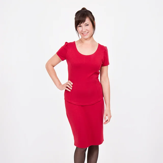 Aber zurück zum Schnittmuster, das ein elegantes Shirt mit Teilungsnähten und drei Ärmelvarianten sowie einen engen Rock in zwei Varianten und somit sechs tolle Kombinationsmöglichkeiten für euch bereit hält!