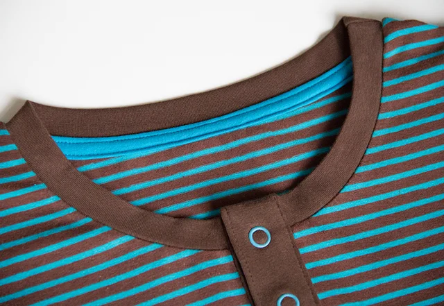 Eine dekorative Knopfleiste könnt ihr auf verschiedene Art und Weise nähen. Bei meiner Variante, die ihr euch in diesem extra Nähvideo anschauen könnt, ist das Halsbündchen bereits angenäht. So sind keine Nahtzugaben sichtbar und die Leiste ist innen schön sauber - nähnerdmäßig - verarbeitet.