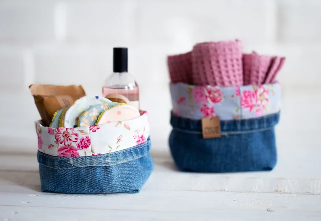 Ihr braucht auf die Schnelle noch ein kleines Geschenk? Oder möchtet gerne eure Kosmetiksachen und kleine Gästehandtücher hübsch aufbewahren? Dann näht aus Jeans-Hosenbeinen ruck-zuck ein paar schnuckelige Stoffkörbchen bzw. Utensilos zum Verschenken oder Selbstbehalten! In der folgenden Anleitung werden alle Arbeitsschritte zum Nähen erklärt.