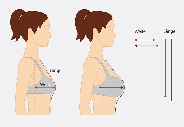 Lasst euch am besten von jemandem helfen, um euren Brust- und Oberbrustumfang zu ermitteln. Der Brustumfang wird wie üblich waagerecht um den Oberkörper um die stärkste Stelle der Brust gemessen. Zum Messen des Oberbrustumfangs bleibt die Position des Maßbandes am Rücken unverändert, im Brustbereich wird es jedoch schräg nach oben um den Körper herumgelegt.