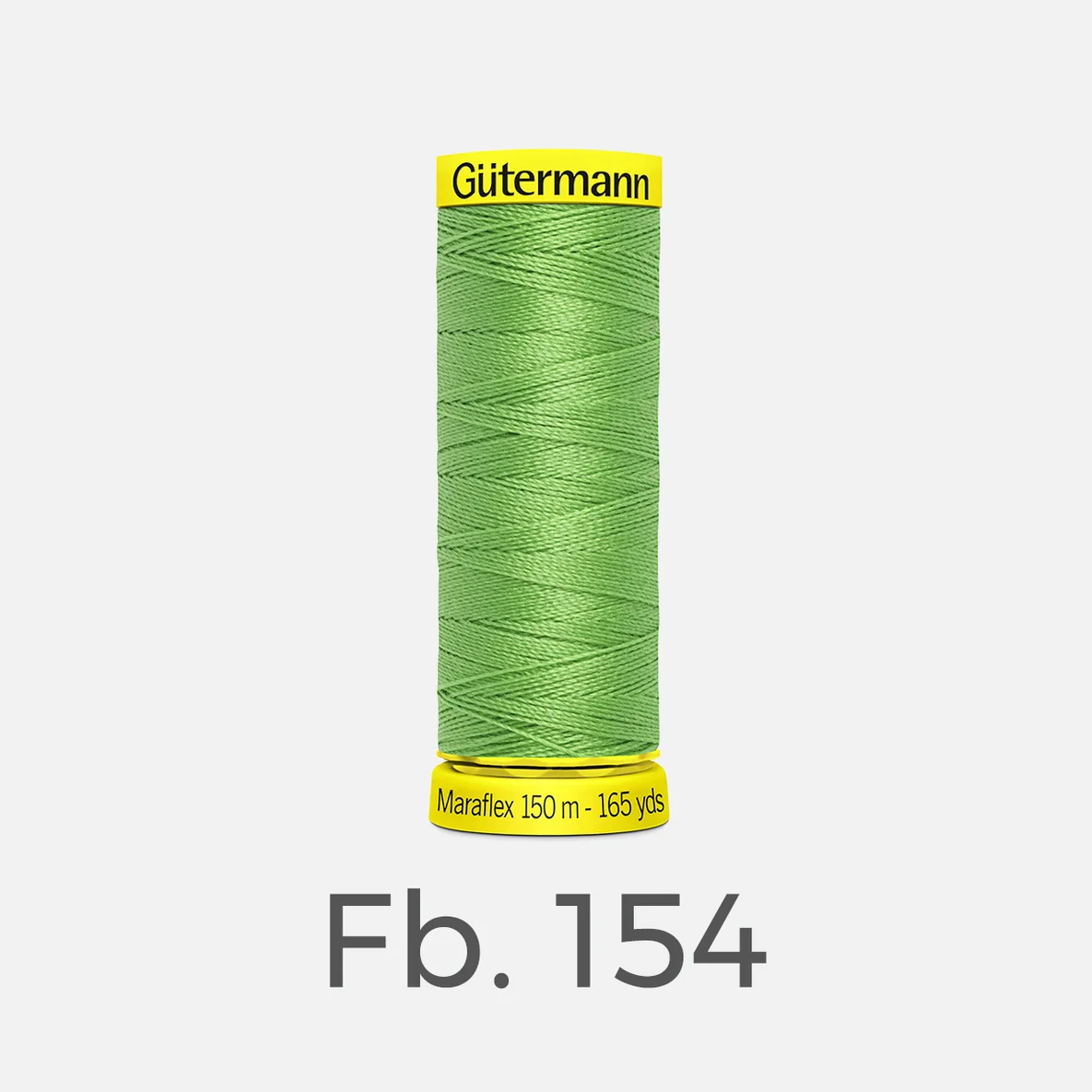 Mit dem elastischen Maraflex Nähgarn von Gütermann lassen sich dehnbare Stoffe problemlos mit einem Geradstich an der Nähmaschine nähen. Das Garn eignet sich hervorragend, um Halsausschnitte und Säume zu verarbeiten oder um Bündchen an Hoodies und Jogginghosen anzunähen.