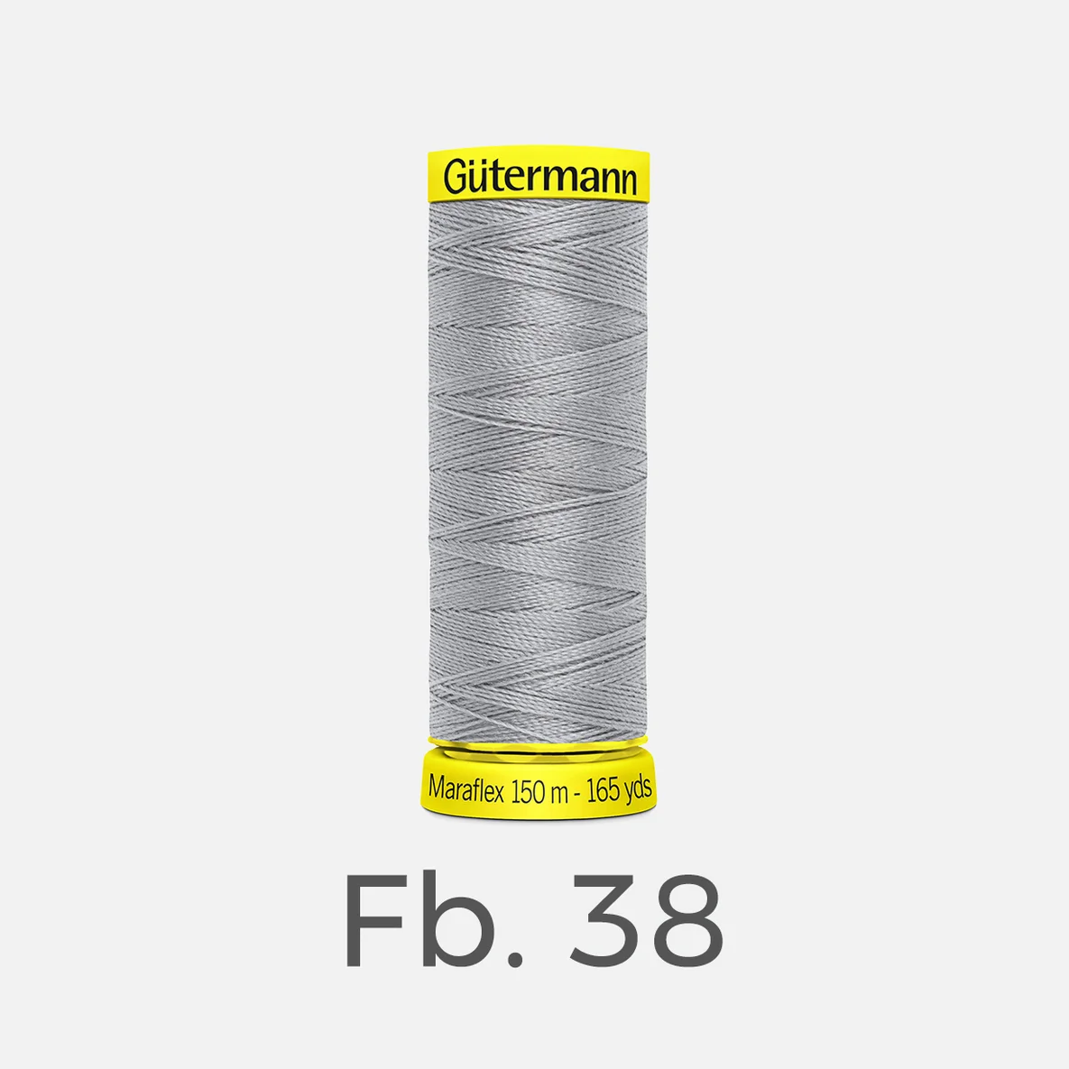 Mit dem elastischen Maraflex Nähgarn von Gütermann lassen sich dehnbare Stoffe problemlos mit einem Geradstich an der Nähmaschine nähen. Das Garn eignet sich hervorragend, um Halsausschnitte und Säume zu verarbeiten oder um Bündchen an Hoodies und Jogginghosen anzunähen.