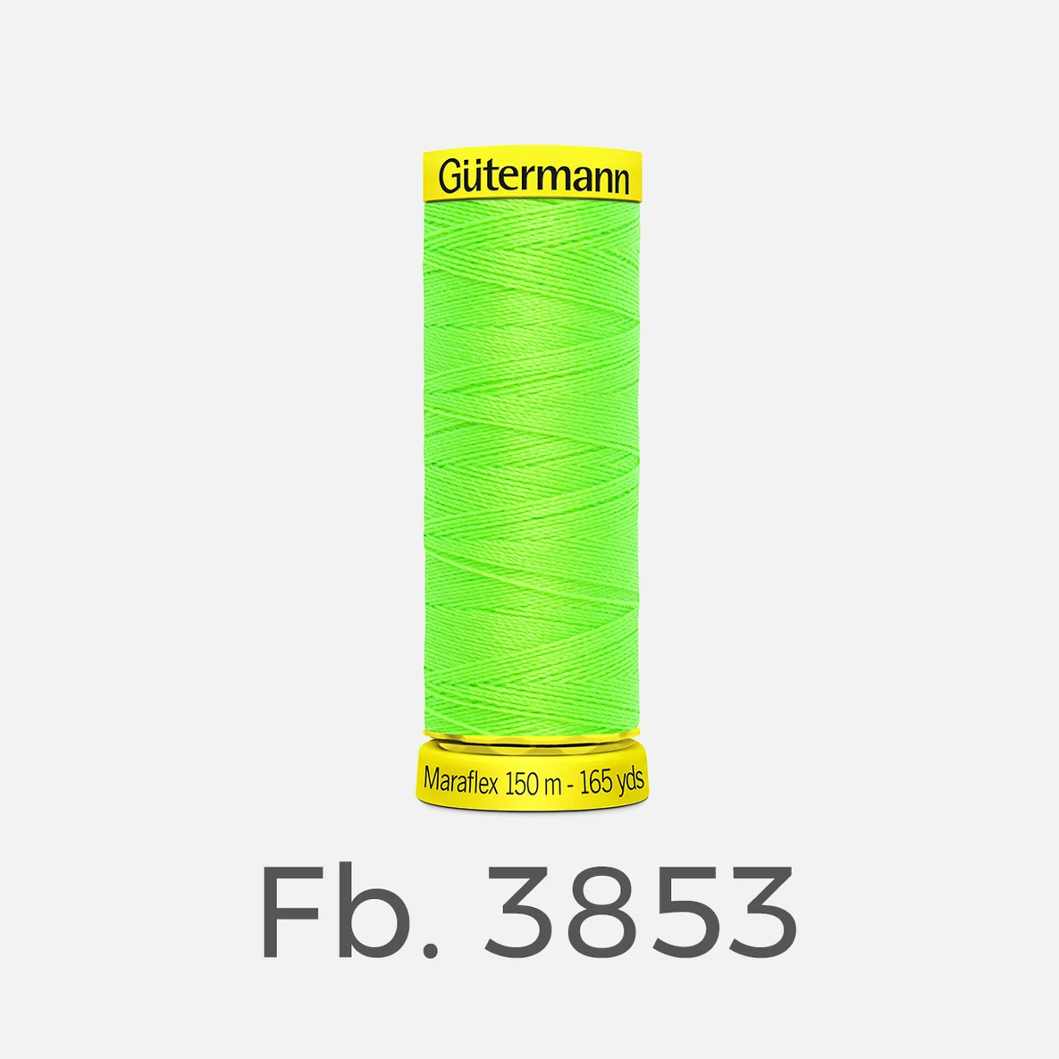 Mit dem elastischen Maraflex Nähgarn von Gütermann lassen sich dehnbare Stoffe problemlos mit einem Geradstich an der Nähmaschine nähen. Das Garn eignet sich hervorragend, um Halsausschnitte und Säume zu verarbeiten oder um Bündchen an Hoodies und Jogginghosen anzunähen.