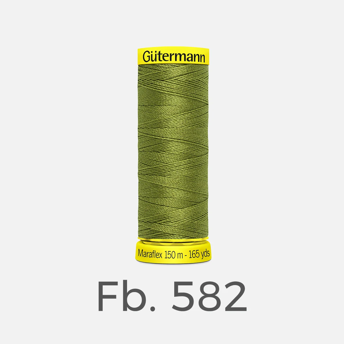 Mit dem elastischen Maraflex Nähgarn von Gütermann lassen sich dehnbare Stoffe problemlos mit einem Geradstich an der Nähmaschine nähen. Das Garn eignet sich hervorragend, um Halsausschnitte und Säume zu verarbeiten oder um Bündchen an Hoodies und Jogginghosen anzunähen.
