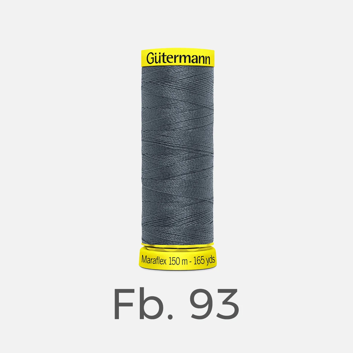 Mit dem elastischen Maraflex Nähgarn von Gütermann lassen sich dehnbare Stoffe problemlos mit einem Geradstich an der Nähmaschine nähen. Das Garn eignet sich hervorragend, um Halsausschnitte und Säume zu verarbeiten oder um Bündchen an Hoodies und Jogginghosen anzunähen.