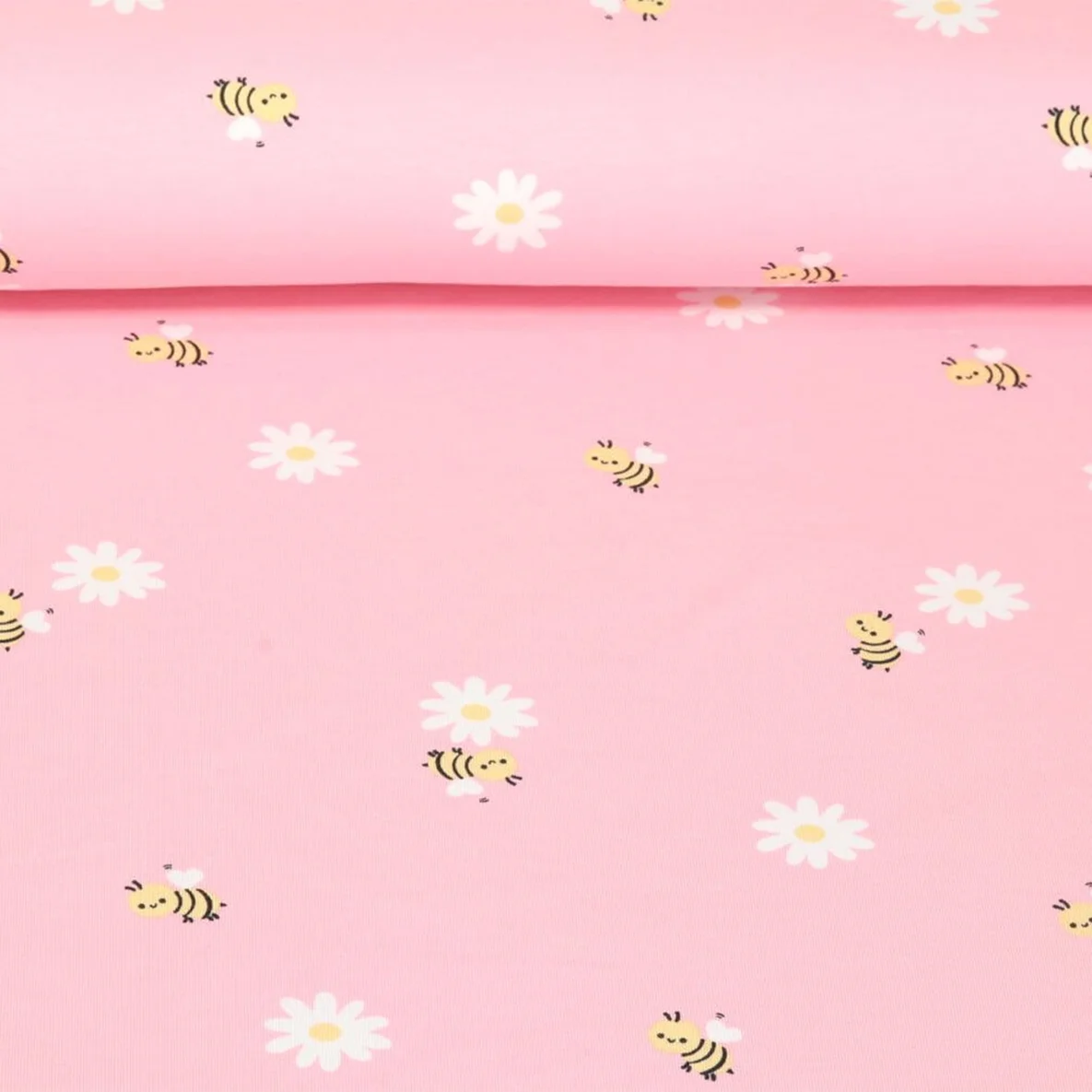 Dieser Jersey mit Bienen und Blumen ist angenehm weich und anschmiegsam. Zaubere aus diesem Stoff verspielte Shirts, Tops, Kleider oder Kindersachen, z.B. mit unserem Babyset "Pippa"