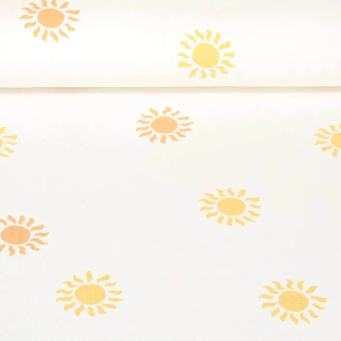 Dieser sommerliche Jersey mit Sonnen ist angenehm weich und anschmiegsam. Zaubere aus diesem Stoff Shirts, Tops, Kleider oder süße Kindersachen, z.B. mit unserem Babyset "Pippa"