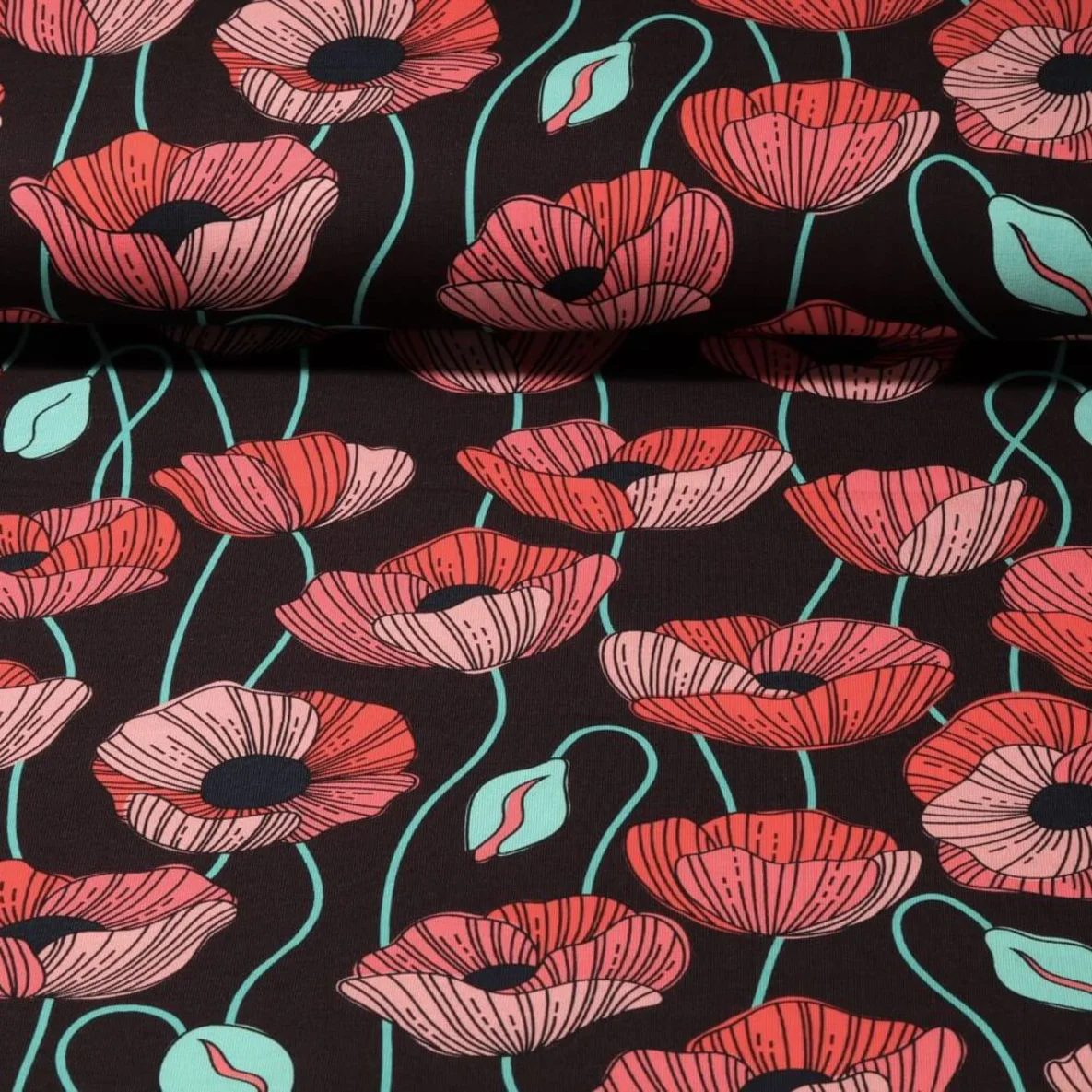Bio-Jersey "Poppies" Schokobraun