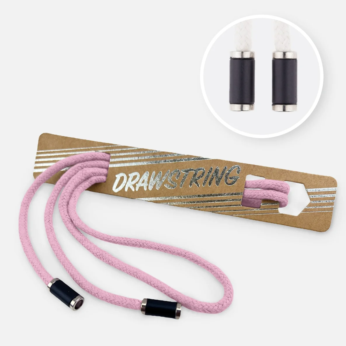 Die Baumwollkordel mit 5 mm Durchmesser sowie 115 cm Länge hat fest vormontierte Endstücke und kann in Tunnelzüge an Kapuzenpullis oder Jacken eingezogen werden. Dazu passen Metallösen mit 8 mm Durchmesser.