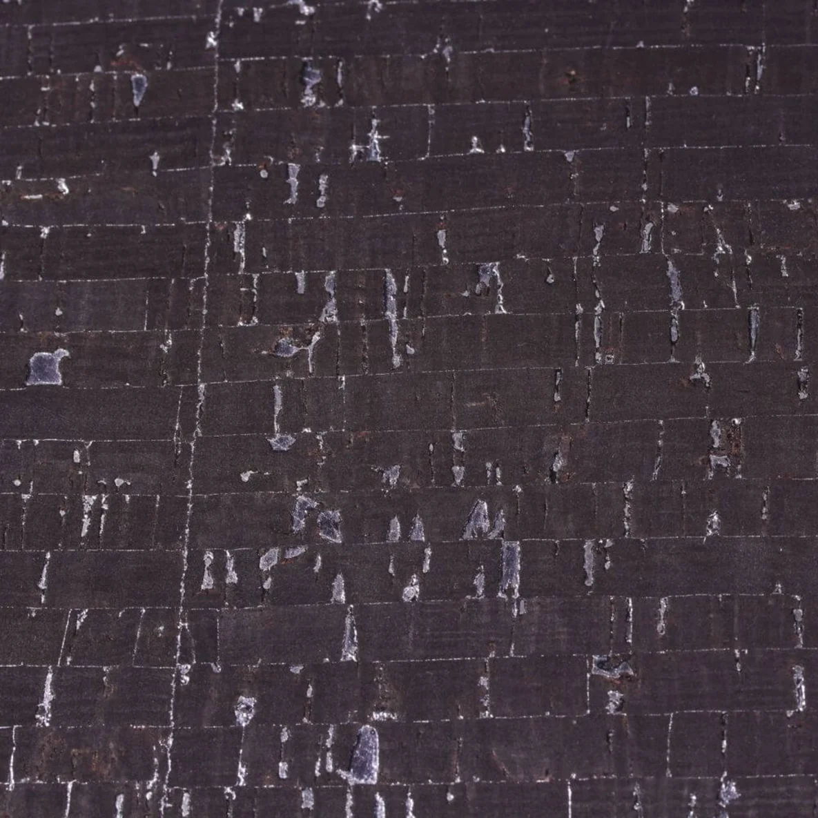 Schwarzer Korkstoff mit Silber Highlights, nachhaltig hergestellt aus nachwachsendem Kork der Korkeiche in Portugal. Ideal zum Selbernähen von Taschen, Beutel und Accessoires. Der Korkstoff hat eine textile Rückseite, die aus einem Baumwoll-Misch-Gewebe (15,5% PES, 29,5% CO, 55% PU) besteht. Auf diese ist die feine Korkschicht aufgebracht.