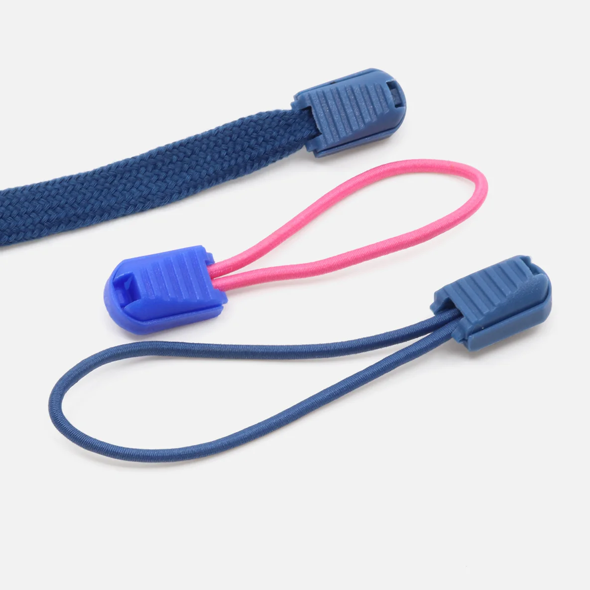 Verwende die Endkappen zusammen mit einer elastischen Gummikordel, um daraus praktische Zipper-Anhänger an Jacken-Reißverschlüssen zu machen!