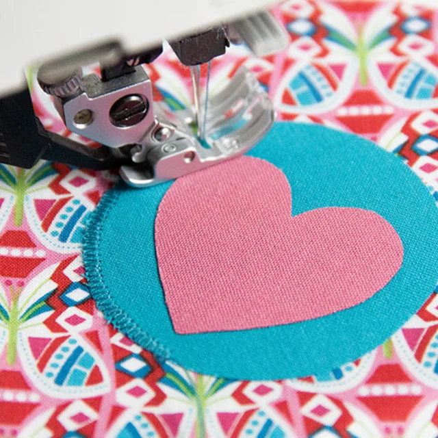 Appliziert die Motive mit einem Zick-Zack-Stich. Verringert dafür die Fadenspannung vom Nadelfaden und stellt die Stichlänge klein und die Stichbreite schmal ein. Testet den Stich zuvor an einem Probestück! Das Stickvlies auf der Rückseite könnt ihr danach vorsichtig abreißen.