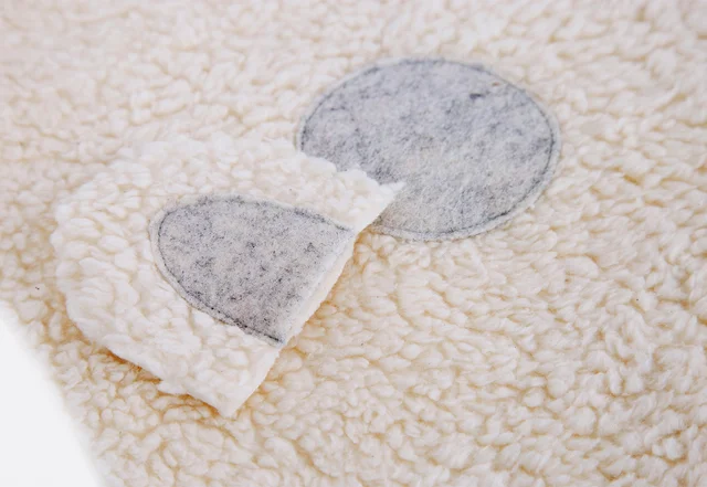 Die Nase, der Mund und das innere Ohr habe ich aus Filzresten genäht. Wenn ihr noch nicht so viel Näherfahrung habt, hilft es, auf die Rückseite der Filzstücke ein wenig Klebevlies zu bügeln. So können die Kleinteile später beim Nähen nicht verrutschen. Eine ausführliche Anleitung zum Applizieren könnt ihr euch auch bei meiner Halloween-Applikations-Anleitung anschauen.
