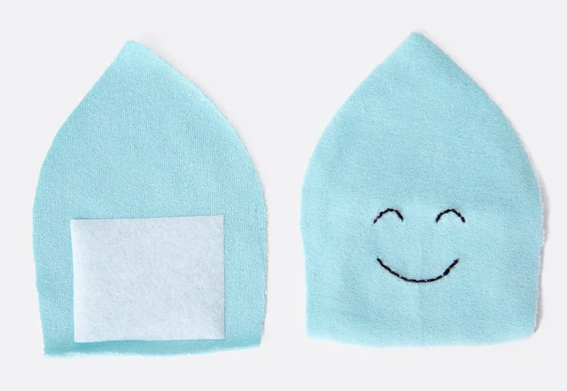 Zeichnet das Gesicht mit einem entfernbaren Markierstift auf und stickt es per Hand mit Stickgarn und einem Rückstich auf. Alternativ könnt ihr mit Textilkleber Wackelaugen aufkleben, ein Gesicht plotten und aufbügeln oder mit einer Stickmaschine und passender Datei aufsticken. Super sind auch die niedlichen Knopfaugen aus Glas.