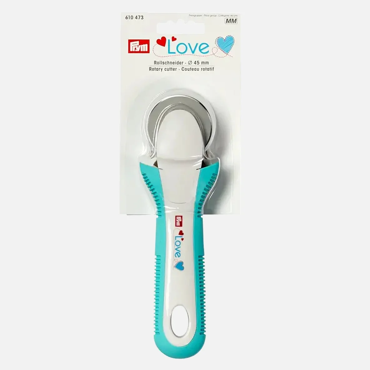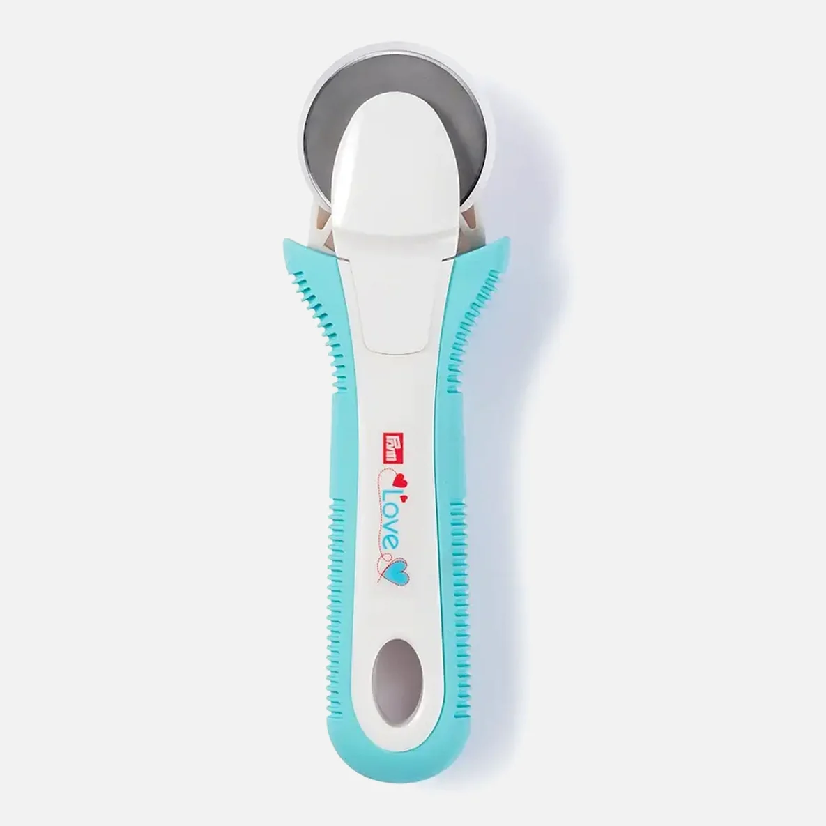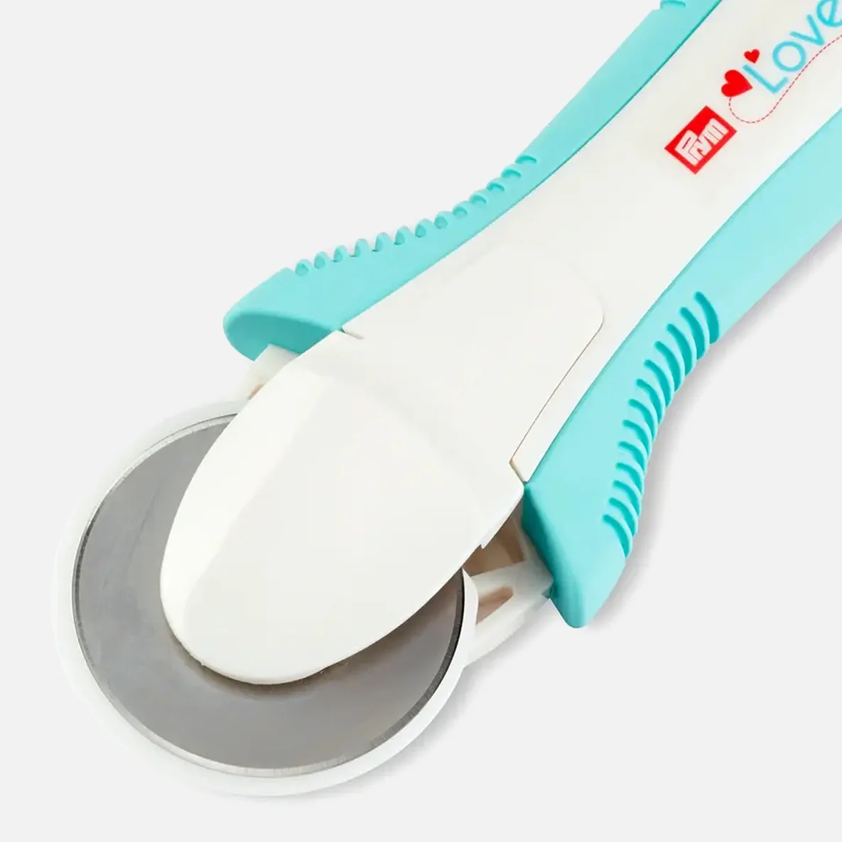 Der PRYM Love Rollschneider Omnicut bietet ein hohes Maß an Sicherheit. Der Klingenschutz gleitet automatisch zurück, wenn auf die Klinge Druck ausgeübt wird. Ist die Klinge in Ruhestellung, schiebt sich der Schutz wieder über das Messer. Der Rollschneider zeichnet sich durch seinen ergonomischen Griff und die scharfe 45 mm Klinge aus, die ganz easy auch das Schneiden durch mehrere Lagen Stoff ermöglicht. Zudem bietet der Rollschneider die Möglichkeit, den Schnittwiderstand auf die entsprechende Stoffdicke einzustellen.