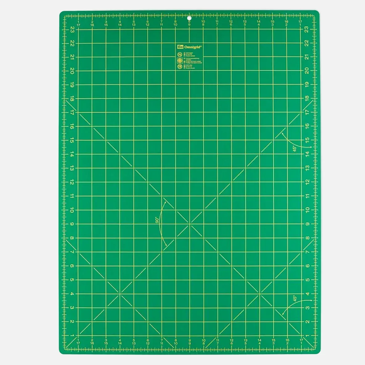 Nutze die PRYM Schneidematte für den mühelosen Zuschnitt mit dem Rollschneider. Die spezielle Schneidematte ist so weich, dass sie die Klinge des Rollschneiders nicht beschädigt, aber auch so fest, dass keine zu tiefen Schnitte entstehen und die Arbeitsoberfläche nicht beschädigt wird. Sie ist perfekt zum Abmessen der Stoffe, denn die Vorderseite der Schneideunterlage ist mit der cm-Skala, die Rückseite mit inch-Skalierung als Maßeinteilung bedruckt. So sind mit dieser Schneideunterlage auch englische Schnittmuster bequem und ohne Umrechnung realisierbar!