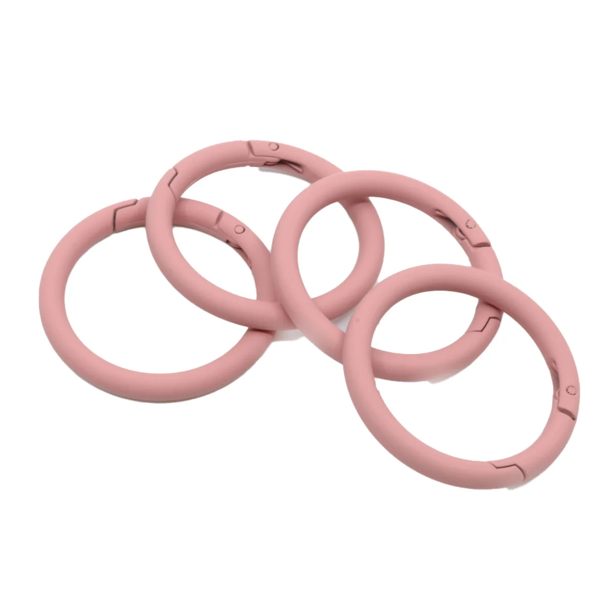 Dieser Ring mit Schnappverschluss ist eine stilvolle Alternative zu Karabinerhaken. So kannst du Taschenhenkel schnell anbringen und entfernen. Der Ring mit gummierter Beschichtung passt farblich zum anderen Metallzubehör in Altrosa. Nutze den Ring zum Beispiel für unser Umhängetaschen-Schnittmuster "Annie".