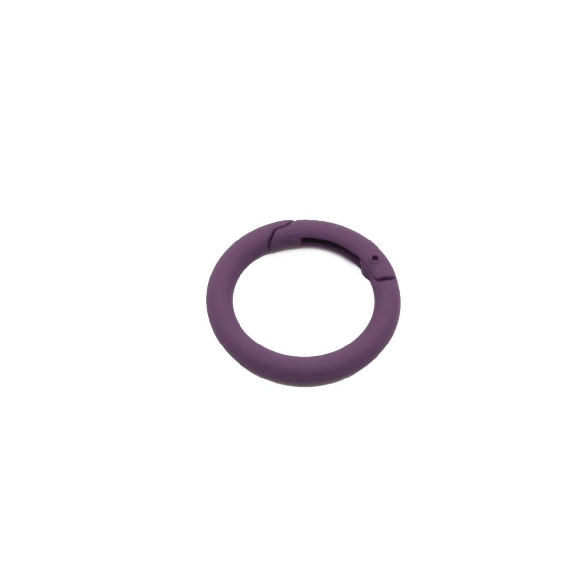 Dieser Ring mit Schnappverschluss ist eine stilvolle Alternative zu Karabinerhaken. So kannst du Taschenhenkel schnell anbringen und entfernen. Der Ring mit gummierter Beschichtung passt farblich zum anderen Metallzubehör in Beere. Nutze den Ring zum Beispiel für unser Umhängetaschen-Schnittmuster "Annie".