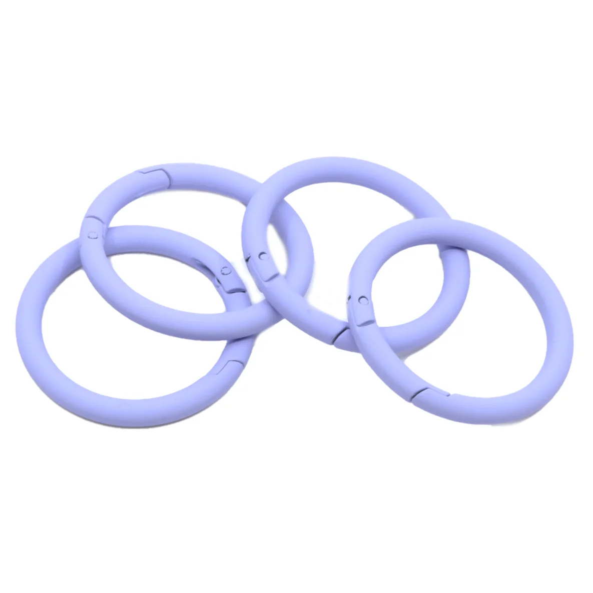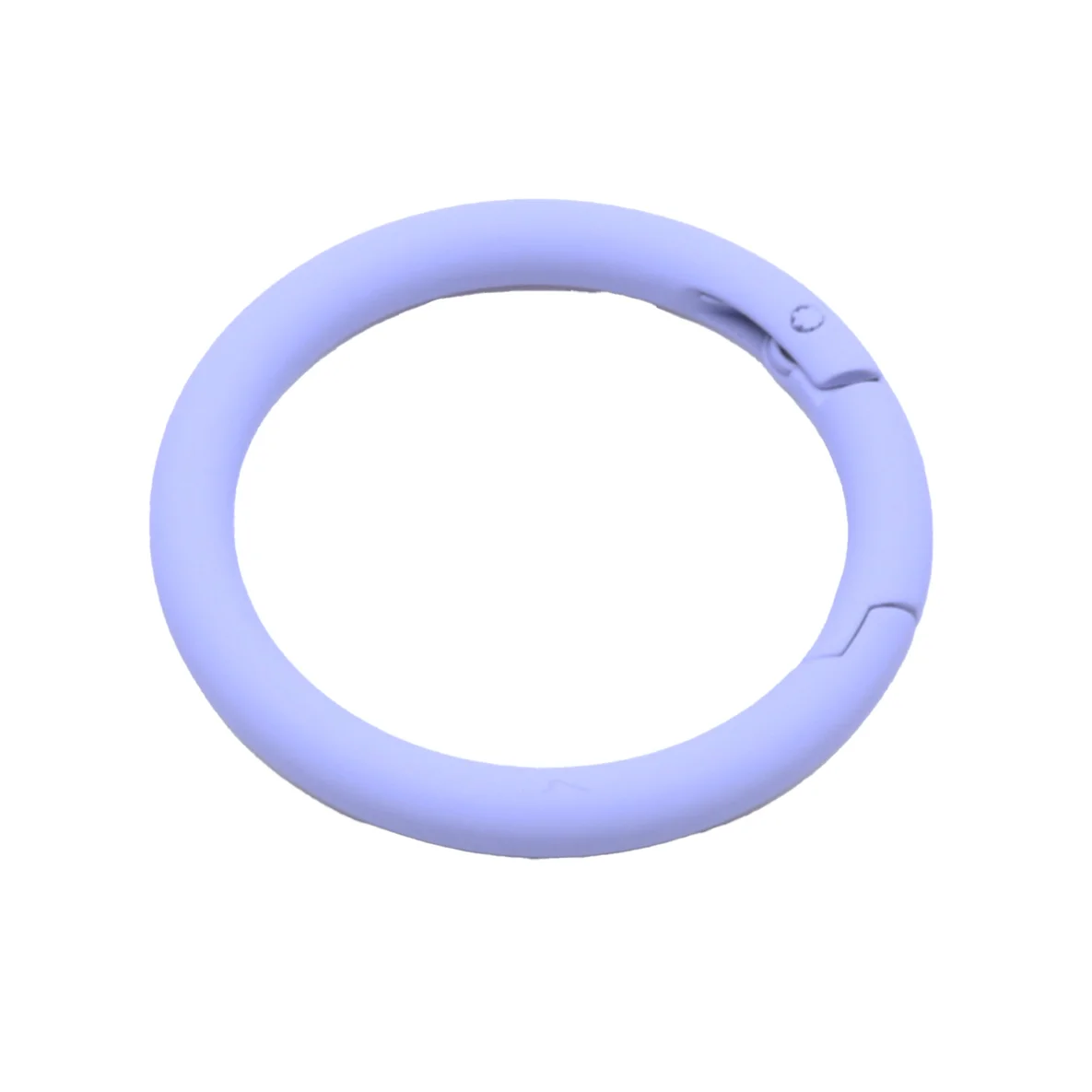 Dieser Ring mit Schnappverschluss ist eine stilvolle Alternative zu Karabinerhaken. So kannst du Taschenhenkel schnell anbringen und entfernen. Der Ring mit gummierter Beschichtung passt farblich zum anderen Metallzubehör in Flieder. Nutze den Ring zum Beispiel für unser Umhängetaschen-Schnittmuster "Annie".