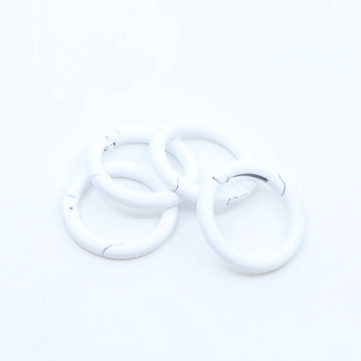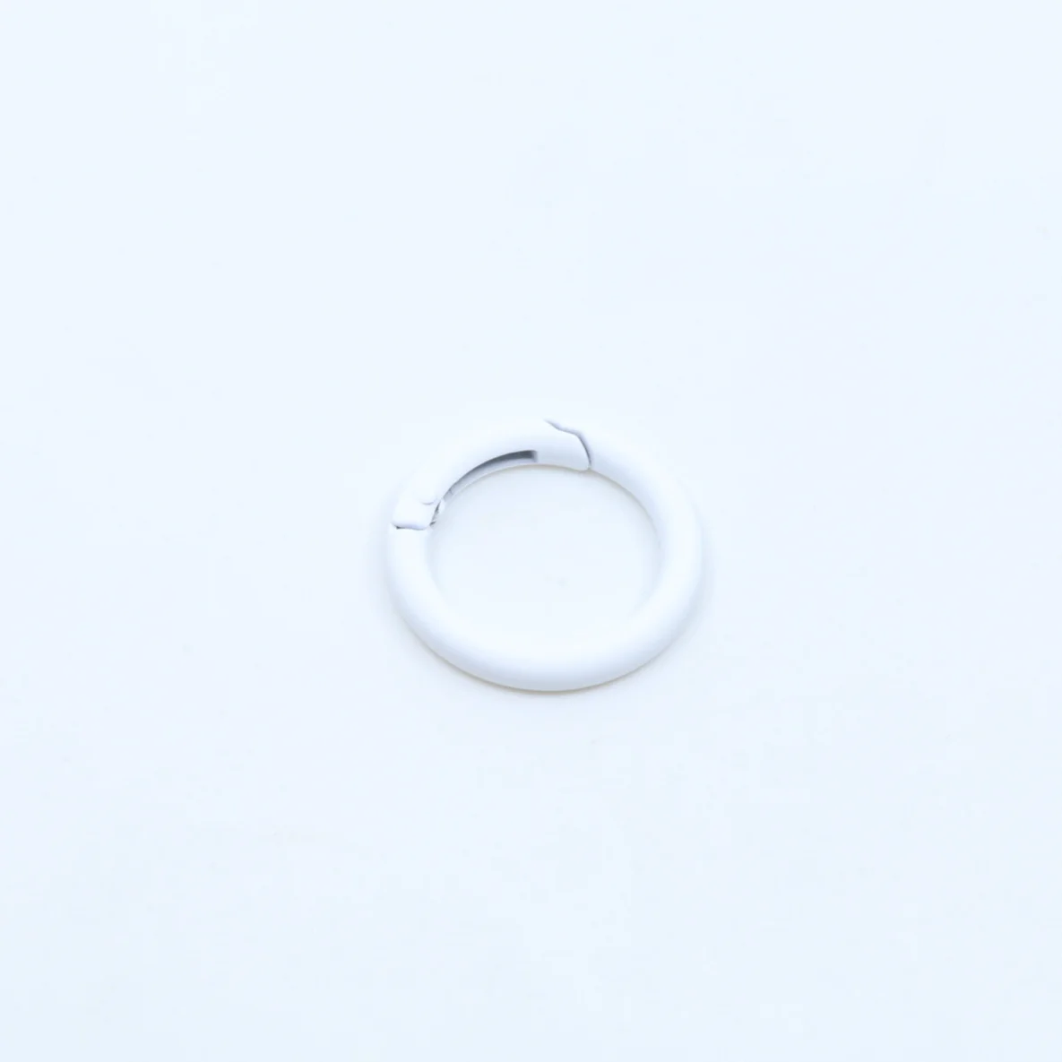 Dieser Ring mit Schnappverschluss ist eine stilvolle Alternative zu Karabinerhaken. So kannst du Taschenhenkel schnell anbringen und entfernen. Der Ring mit gummierter Beschichtung passt farblich zum anderen Metallzubehör in Weiß. Nutze den Ring zum Beispiel für unser Umhängetaschen-Schnittmuster "Annie".