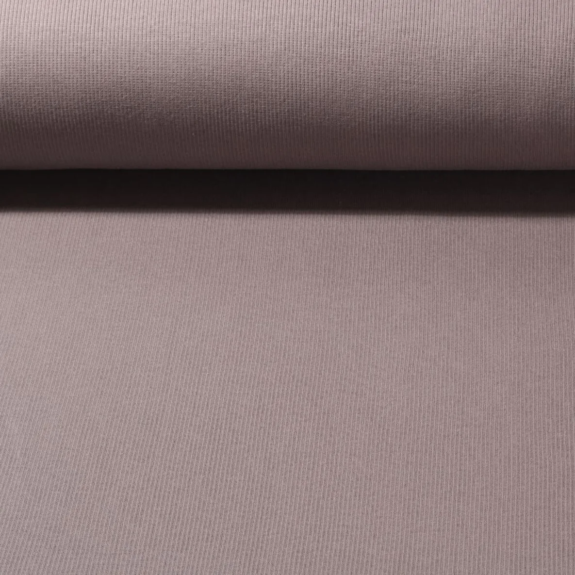 - Durch die Rippenstruktur neigt der Stoff dazu, sich beim Nähen auszudehnen. Dies lässt sich verhindern, indem du bei der Overlockmaschine das Differential erhöhst (z.B. auf 1,5) oder auf gerundete Stoffkanten (Ausschnitt, Armlöcher) zuvor Formband aufbügelst. Die enthaltene Kettnaht sorgt für Stabilität.