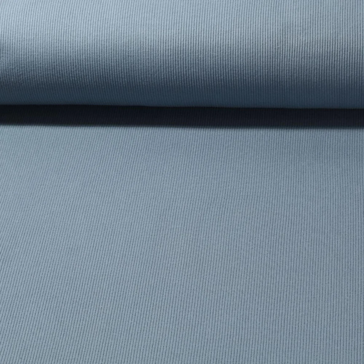 - Durch die Rippenstruktur neigt der Stoff dazu, sich beim Nähen auszudehnen. Dies lässt sich verhindern, indem du bei der Overlockmaschine das Differential erhöhst (z.B. auf 1,5) oder auf gerundete Stoffkanten (Ausschnitt, Armlöcher) zuvor Formband aufbügelst. Die enthaltene Kettnaht sorgt für Stabilität.