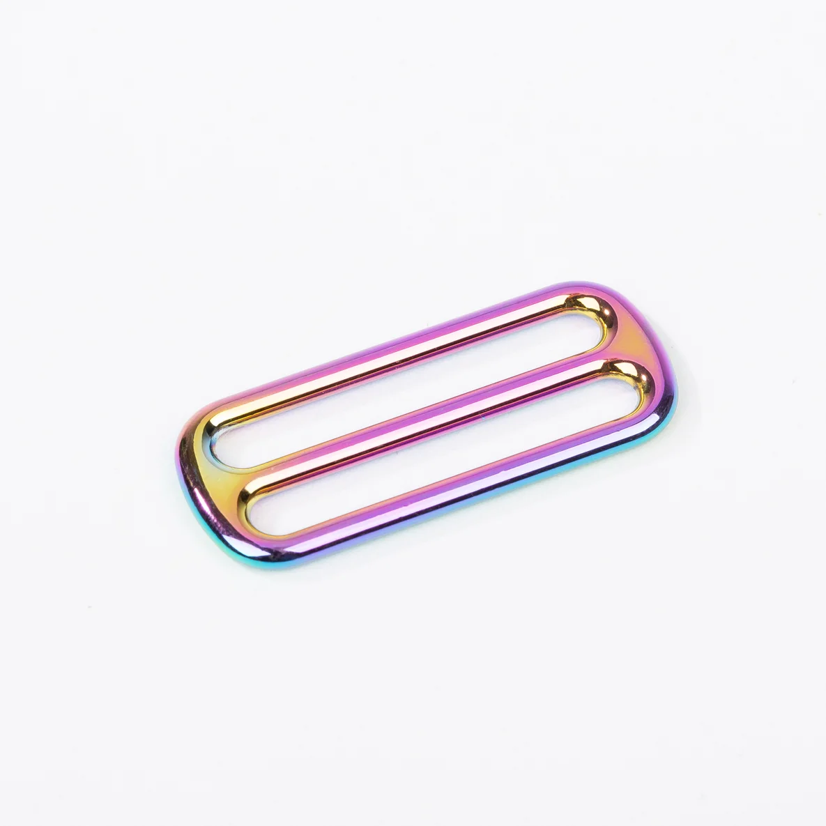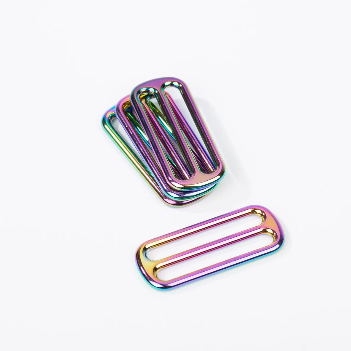 Mit diesem regenbogenfarbenen Schieber (40 mm) aus Metall kannst du verstellbare Tragegurte für Taschen und Rucksäcke einfach selber nähen. Durch das gerade und schlanke Design werden deine Taschen zum edlen Hingucker. Nutze den Schieber zum Beispiel für unser Schultertaschen-Schnittmuster "Adora".