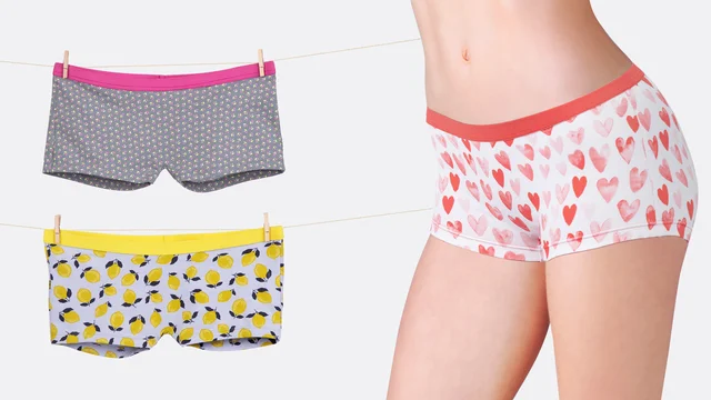 Nähe mit unserem Schnittmuster "Becky" hübsche Damen-Hipster aus Jersey-Stoffresten! Die Unterhose ist bequem geschnitten und kommt ohne Nähte an Vorder- und Rückseite aus. Nach Belieben kannst du den Hosenbund mit einem 2 bis 3 cm breiten Gummiband nähen oder mit einem schmalen Falzgummi einfassen.