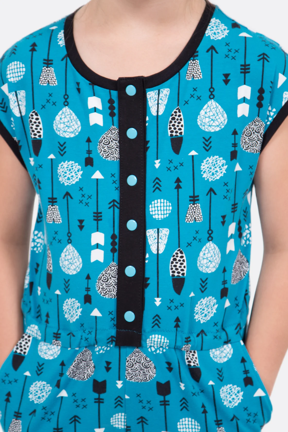 Mit dem Schnittmuster „Alice“ kannst du deinen Kleinen bequeme Jumpsuits zum „einfach reinschlüpfen“ nähen. Ob mit kurzen Ärmel oder als Top in Kombination mit einer kurzen oder langen Hose, du kannst alle Varianten miteinander kombinieren. Damit das an- und ausziehen nicht zum Problem wird, sind die Möglichkeiten zum Öffnen, wie ein Reißverschluss oder eine Knopfleiste, im Vorderteil verarbeitet. Sowohl dir kurze- als auch die lange Hose kannst du mit Eingriffstaschen ausstatten, so können Kinder ihre kleinen Schätze immer mit sich herumtragen. Aus Jersey genäht ist dieser Einteiler supergemütlich und genau das richtige zum Rumtoben. Näh doch mal einen süßen Playsuit für deine Mädels, mit dieser Anleitung gelingt es dir garantiert.