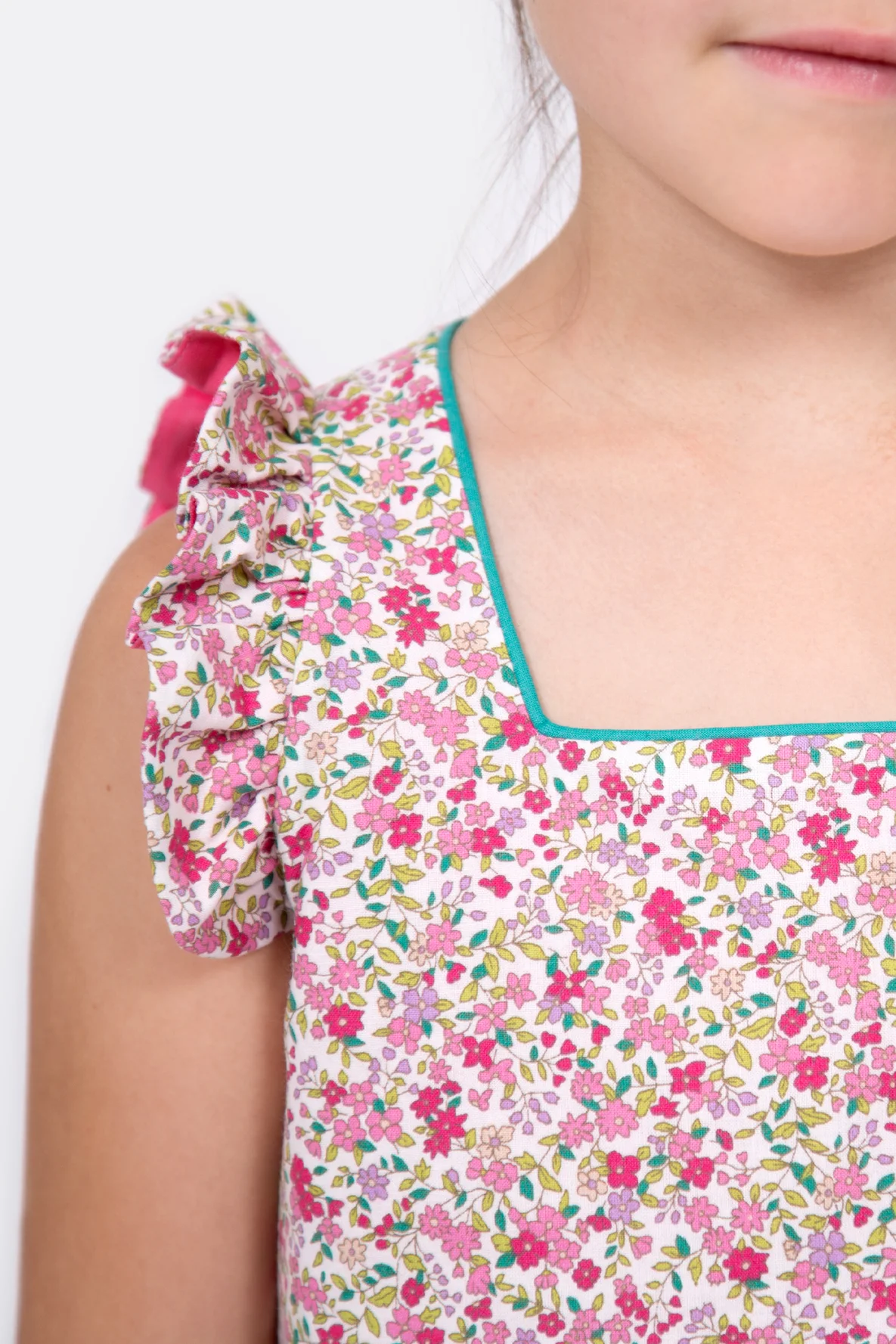 Mit dem Schnittmuster „Leni“ kannst du ein hübsches, ärmelloses Kinderkleid in vielen, verschiedenen Varianten nähen. Wähle zwischen einem eckigen oder runden Ausschnitt sowie zwischen einer klassischen Knopfleiste oder einem Knotenverschluss. Kombiniere dazu einen Teller-, Falten- oder einen Bahnenrock und kreiere so ein tolles Sommerkleidchen für dein Kind! Mit