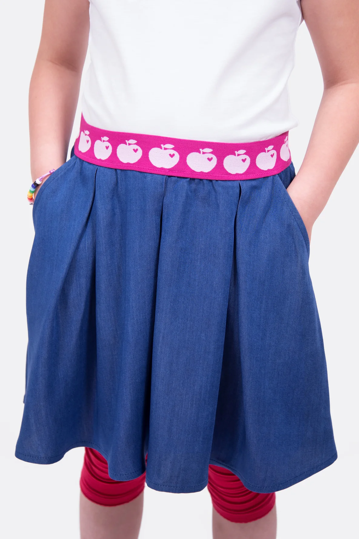 Der Kinderrock „Clara“ ist ein vielseitiger Kinderrock mit hübschen Kellerfalten. Der Gummibund ist einfach zu nähen und superbequem. Die Eingriffstaschen sind praktisch für kleine Kinderschätze und können nach Belieben mit dekorativen Klappen verziert werden. Zudem kannst du den Vorderrock mit einem Einsatz nähen und so verschiedene Stoffe miteinander kombinieren.