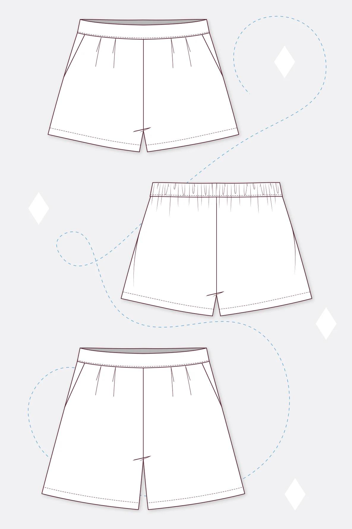 Reinschlüpfen und Wohlfühlen – mit unserem Schnittmuster "Paula" kannst du luftige Shorts in zwei Längen für heiße Tage selber nähen! Der bequeme Gummibund lässt sich flexibel an die Körpermaße anpassen und liegt im Bauchbereich flach an. Bundfalten verleihen der Hose eine angenehme Weite und sorgen zugleich für einen legeren Look. Praktische Taschen dürfen natürlich auch nicht fehlen. Wähle einen weichen Musselin, einen kühlenden Leinenstoff oder auch einen fließenden Viskosestoff für deine neue Lieblingsshorts.