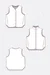 Stoffverbrauch: Die Tabelle enthält den Stoffverbrauch (in cm) für die Weste mit rundem Ausschnitt oder Stehkragen.
