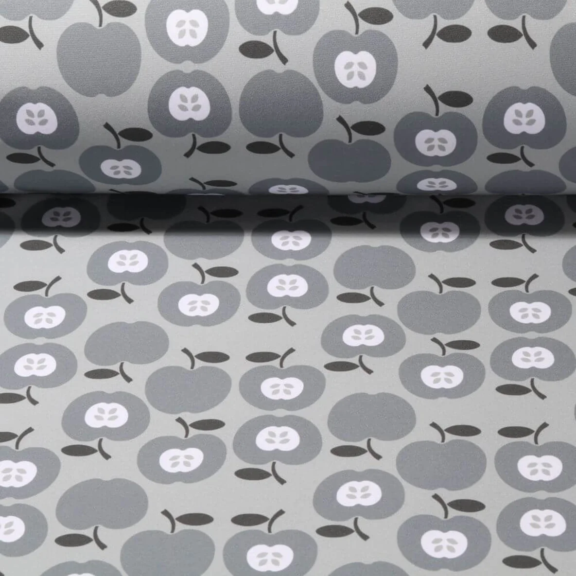 Dieser Softshell mit Äpfeln eignet sich prima zum Nähen von stylischen Regenmänteln und Funktionsjacken! Die Außenseite schützt dich bei jedem Wetter, weil sie wasser- und schmutzabweisend ist, während die flauschige Fleece-Innenseite isoliert und wärmt.