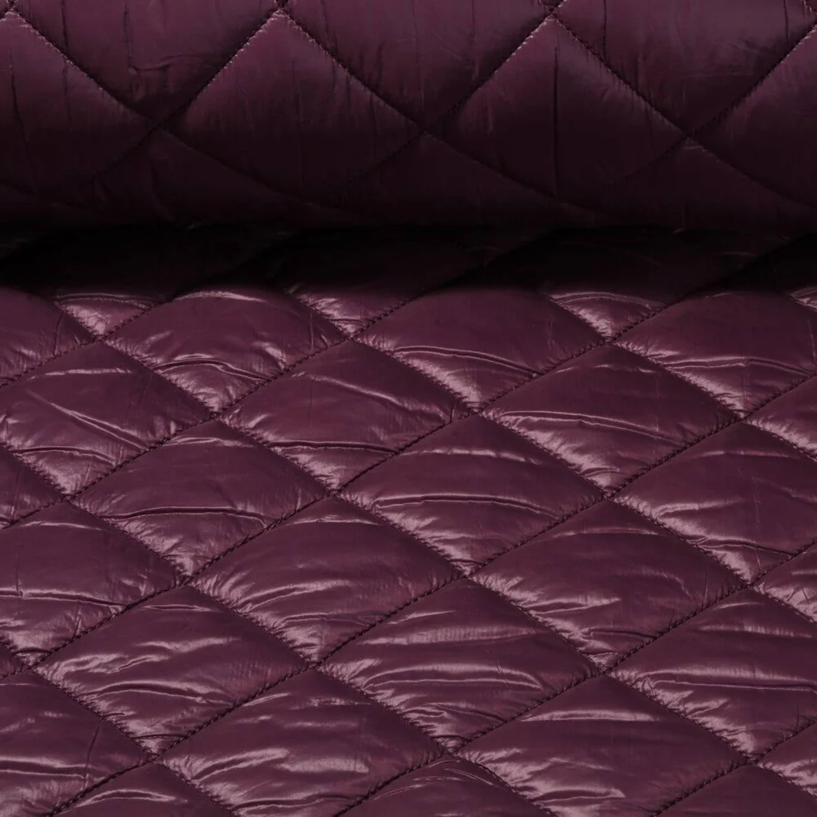Voluminöser Steppstoff mit Rautenmuster (7 x 7 cm) und leicht glänzender Außenseite. Das wasserabweisende Material eignet sich gut zum Nähen von Outdoorjacken, Westen und Mänteln. Zwischen dem gleichfarbigen Außen- und Innenstoff ist eine weiche Wattierung eingearbeitet, ein zusätzliches Futter ist daher nicht nötig.